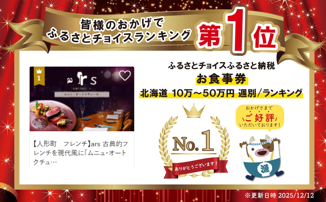 御礼!ランキング第1位獲得!【人形町 フレンチ】ars 古典的フレンチを現代風に「ムニュ・オートクチュール」食事券2名様【CC0000156】( ふるさと納税 レストラン ディナー ふるさと納税 レストラン ランチ コース料理 ふるさと納税 食事 ふるさと納税 食事券 東京 ふるさと 食事券 ふるさと 食事 ふるさと 食事券 東京 ふるさと納税 東京 食事券 ふるさと納税 チケット )