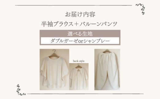 生地が選べる!人と環境にやさしい天然素材のルームウエア(半袖ブラウス+バルーンパンツ) ダブルガーゼorシャンブレー SK003/SK004