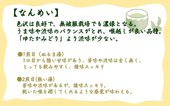 - 【 先行予約 】種子島 射場貴大 茶園 「さえみどり」 「あさつゆ」 「なんめい」 「やぶきた」 茶ツウ が 喜ぶ 単品 味わい セット NFN573【300pt】 // 日本茶 緑茶 お茶 新茶 一番茶 詰め合わせ セット お茶堪能 さえみどり あさつゆ なんめい やぶきた