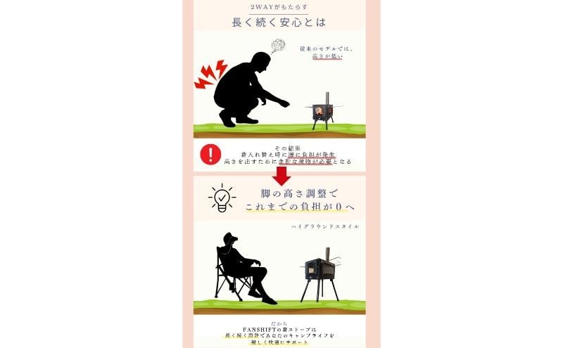 - 薪ストーブ キャンプ アウトドア キャンプストーブ まきストーブ FANshift (ファンシフト) 2面ガラス 調理可能 耐熱ガラス 焚き火台 暖炉 高脚調整 折りたたみ[№5346-2545]
