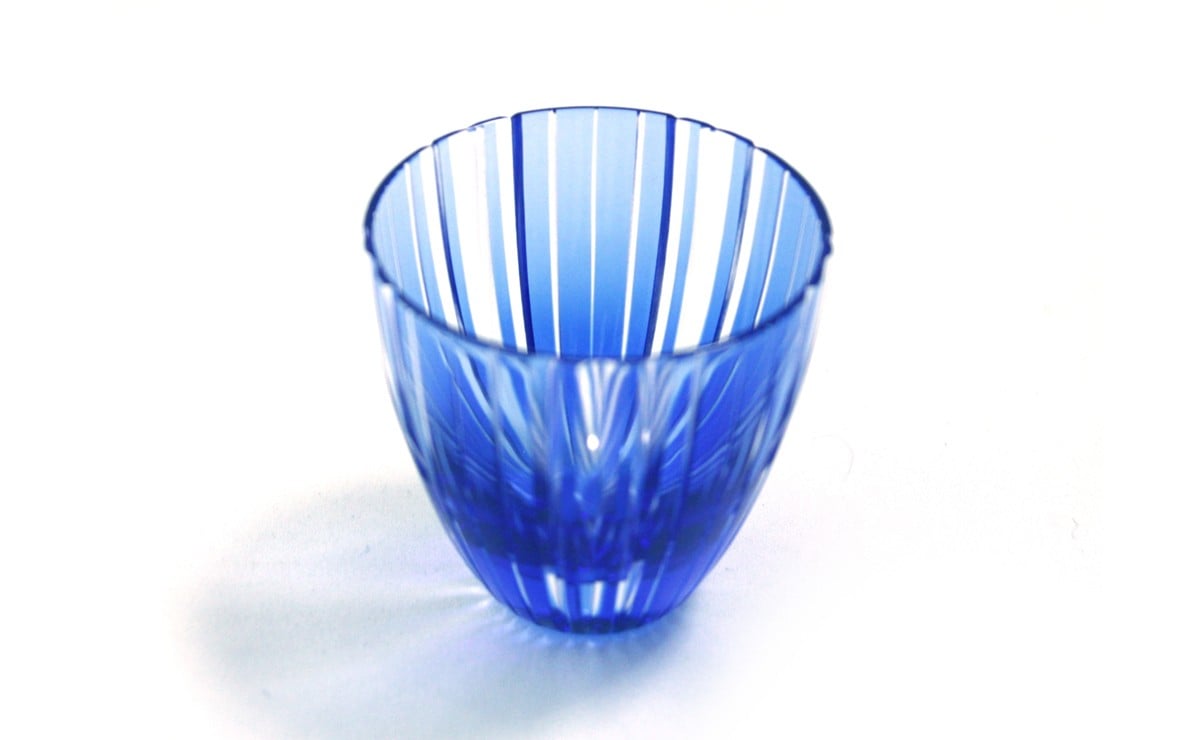 - 浅草切子 KANA KURITA「ぐい呑 滝縞 青藍/金赤」ペアセット 木箱入り| 切子 花切子 切子ガラス ガラス工芸 グラス ガラス コップ 手作り ぐい呑み 家飲み 酒器 ハンドメイド 手作り ギフト 贈答 プレゼント