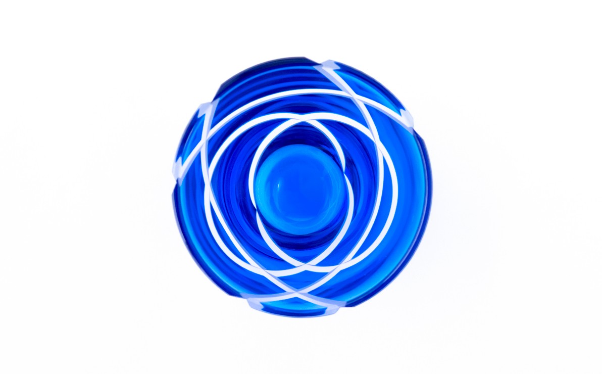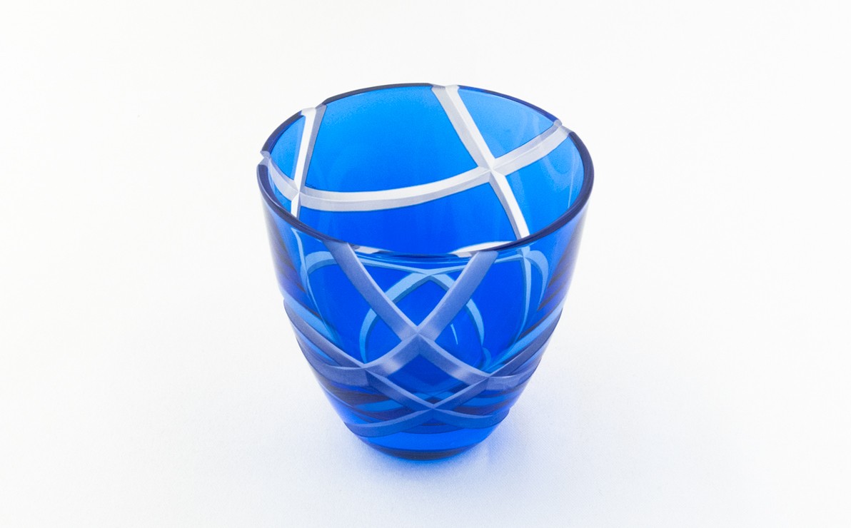 - 浅草切子 KANA KURITA「ぐい呑み 結 青藍」木箱入り| 切子 花切子 切子ガラス ガラス工芸 グラス ガラス コップ 手作り ぐい呑み 家飲み 酒器 ハンドメイド 手作り ギフト 贈答 プレゼント