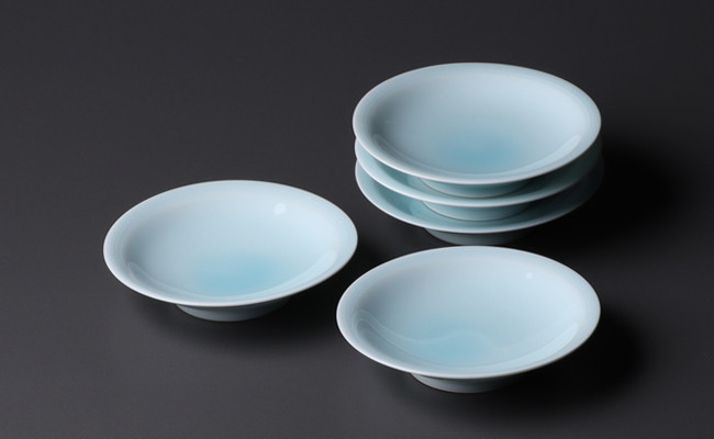- 佳秀窯 西山正作 ろくろ手造り 青磁豆皿(5客) A70-94