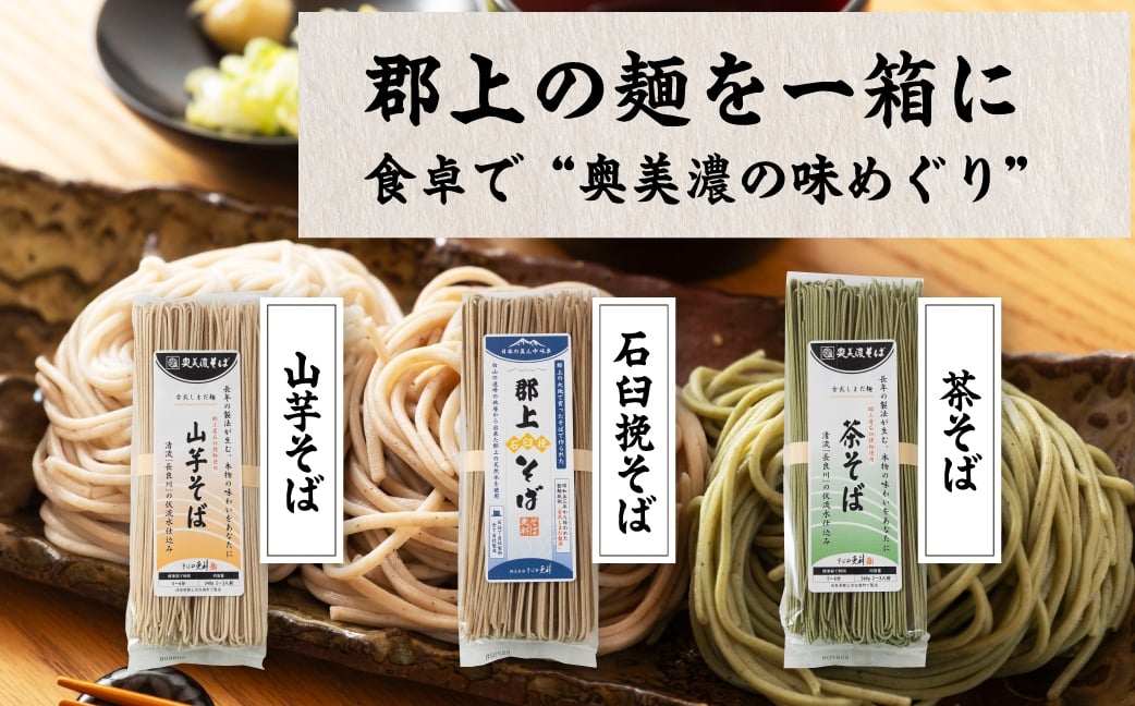 【定期便】3回定期便 奥美濃麺づくし そば 乾麺《石臼ひきそば 茶そば 山芋そば うどん ひやむぎ きしめん そうめん》 食品 麺類 そば 30000円