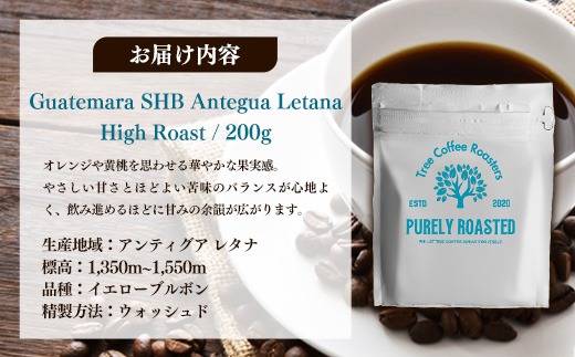 【完全受注焙煎】Tree Coffee Roasters「グアテマラ アンティグア レタナ ハイロースト」 200g - コーヒー 豆 こだわり 自家焙煎 コーヒー豆 熱風式焙煎 本格 贈り物 おすすめ 人気 沖縄県 八重瀬町