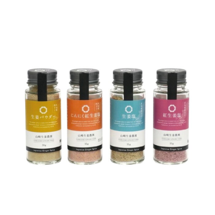 - 【ふるさと納税】 山崎生姜農園 生姜農家 が作った 生姜スパイス 4本 セット ( 生姜塩・紅生姜塩・にんにく紅生姜塩・生姜パウダー) 粉末 調味料 スパイス 塩 しお 生姜 しょうが ショウガ にんにく ニンニク 高知県 高知 四万十市 四万十 しまんと 送料無料 26-328