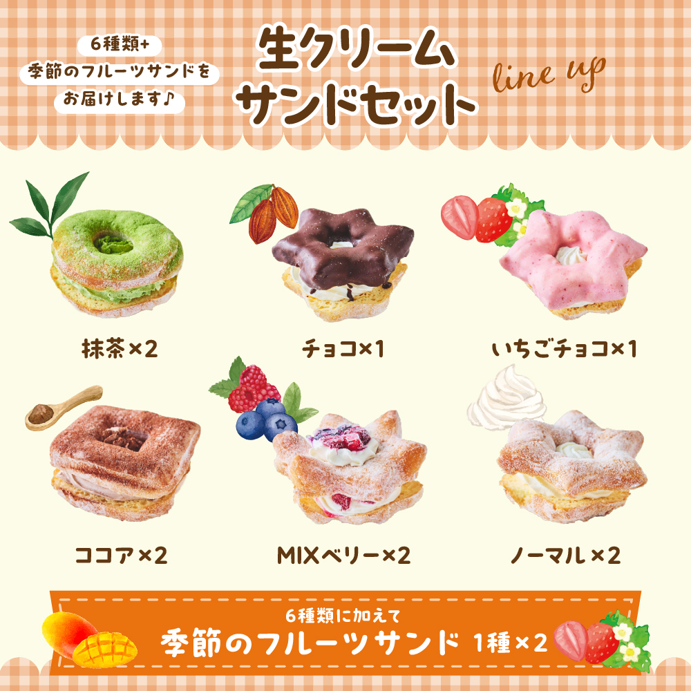 ドーナツ 生クリームサンドセット 群馬県 千代田町 冷凍スイーツ グルメ 果物 レモン 栗 いちご 季節 詰め合わせ 送料無料 お取り寄せ ギフト 贈り物 贈答用 プレゼント