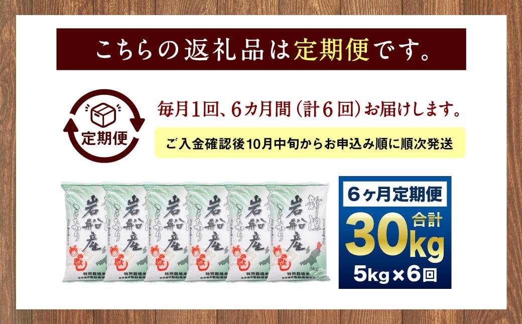 【新米受付・令和8年産米】新潟県村上市岩船産 特別栽培米コシヒカリ30kg(5kg×6ヶ月コース)1013012N 定期便 毎月 新米予約 お米 白米 こしひかり 精米 村上市