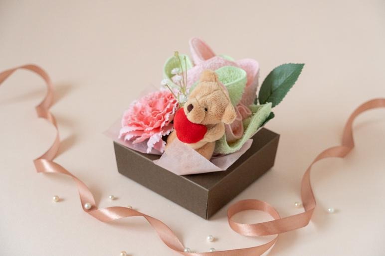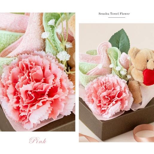 - G1695m 【母の日】泉州タオルフラワー くまちゃんアレンジ クリアボックス入