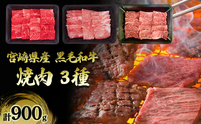 - 【ふるさと納税】宮崎県産 黒毛和牛 焼肉 3種 計900g 肩ロース モモ ウデ 焼肉 牛肉 宮崎県 諸塚村