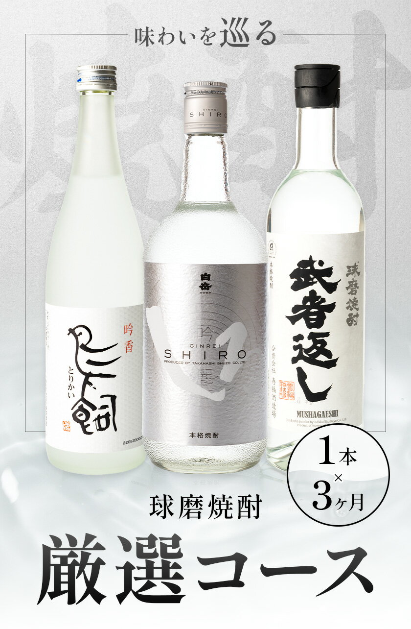 【ふるさと納税】定期便 球磨焼酎 厳選コース 3ヶ月 白岳 銀しろ 吟香鳥飼 武者返し 25度 720ml 1本 × 3ヶ月 計3本《お申込み翌月から出荷》熊本県 球磨郡 山江村 焼酎 酒 お酒 本格米焼酎 米焼酎 国産 熊本県産 国産米使用