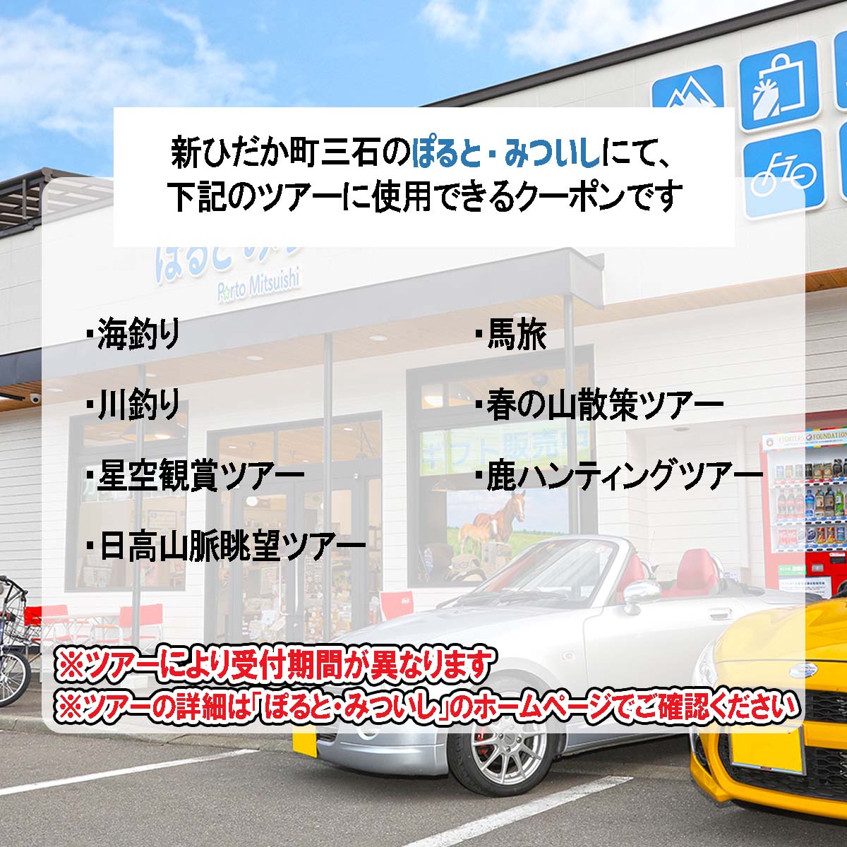 - 【ふるさと納税】 北海道 新ひだか町 体験 ツアー クーポン 5,000円分 三石 アクティビティ 野外 自然 アウトドア レジャー 海 川 釣り つり 星 空 観賞 鑑賞 日高 山脈 国立公園 馬 うま ウマ 競走馬 サラブレッド 牧場 見学 馬旅 山 鹿