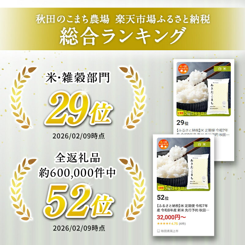 【ふるさと納税】《レビューキャンペーン実施中》米 定期便 令和7年産 令和8年産 新米 先行予約 秋田県産 あきたこまち 白米 5kg 10kg 15kg 20kg 25kg 30kg 5キロ 選べる容量 選べる配送回数 3か月 6か月 9か月 12か月 3回 6回 9回 12回 潟上市 送料無料【秋田のこまち農場】