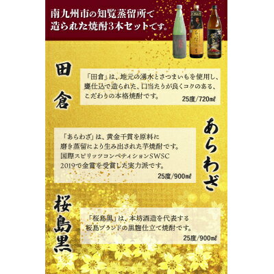 【ふるさと納税】焼酎 「田倉・あらわざ・桜島黒」セット【1186023】