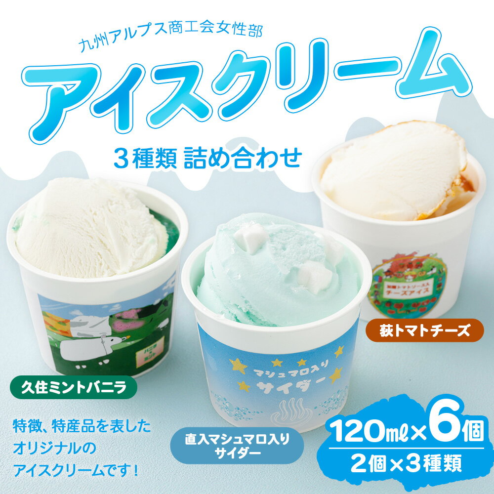 【ふるさと納税】九州アルプス商工会女性部アイスクリーム 計6個入 各種2個入 アイス詰め合わせ お菓子詰め合わせ セット アイスセット お菓子セット 大分県 竹田市 久住ミントバニラ 直入マシュマロ入りサイダー 荻トマトチーズ