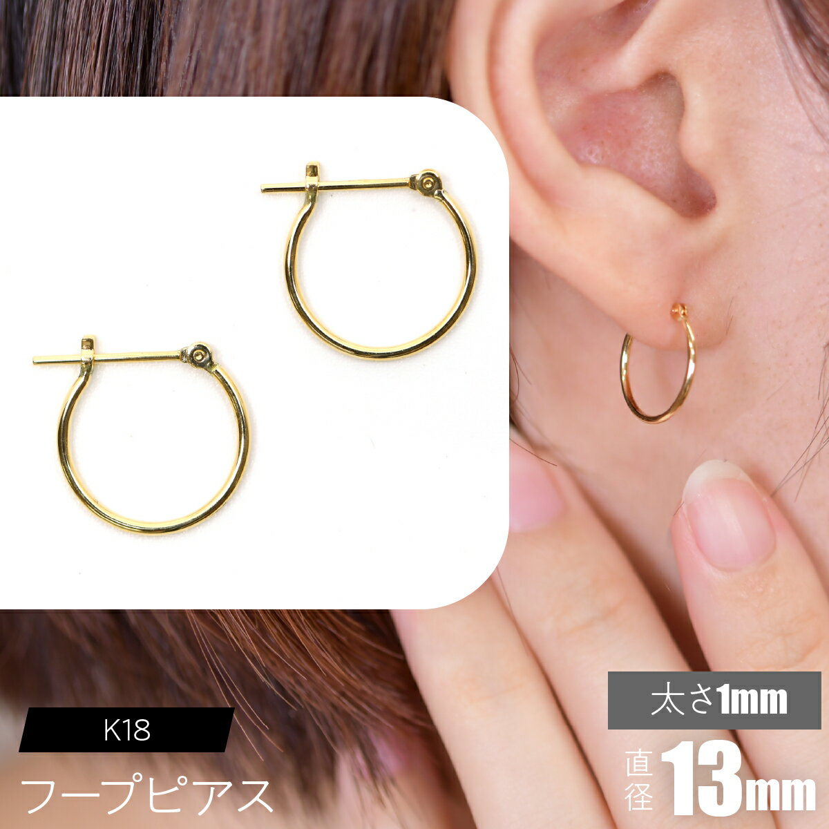 【ふるさと納税】K18 フープピアス 太さ1mm 【えらべるサイズ】SWCA009 ふるさと納税 K18 18金 フープピアス ピアス プレゼント ギフト 贈り物 山梨県 昭和町 送料無料