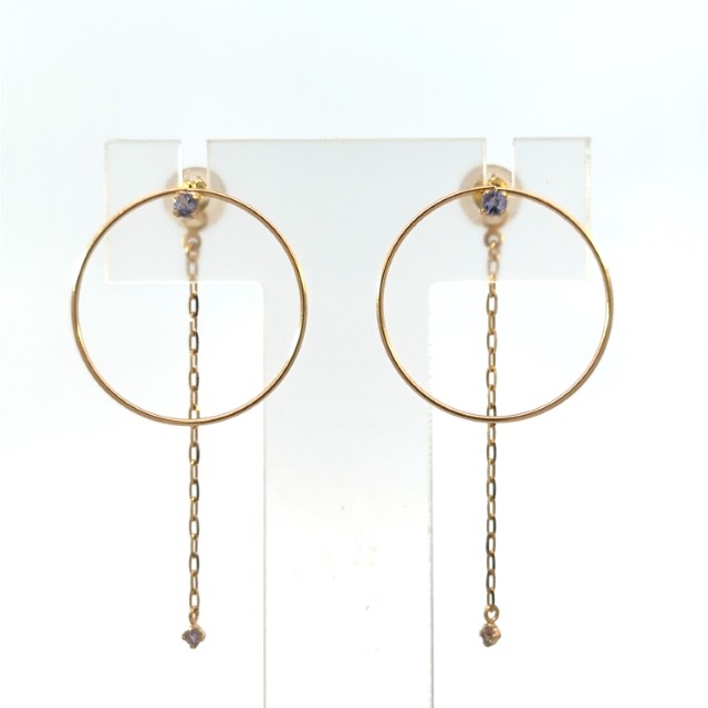 - 【ふるさと納税】 < 甲府ジュエリー > ピアス ジュエリー レディース アクセサリー K18 18金 イエローゴールド タンザナイト ゴールドサークル シリコンキャッチ 贈り物 ギフト プレゼント ジュエリーケース付 保証書付 k176-004