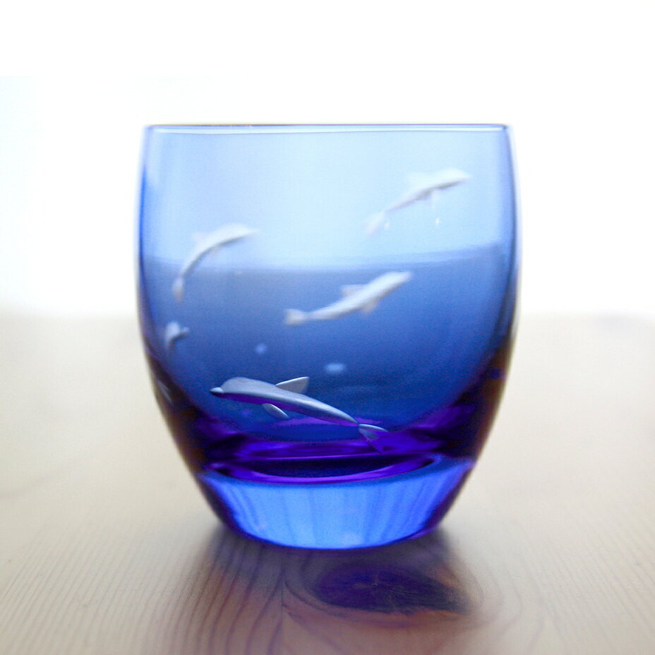 【ふるさと納税】浅草切子 aquatic「Dolphin Dance 丸オールド青藍」 切子 花切子 切子ガラス ガラス工芸 グラス ガラス コップ 手作り ぐい呑み 家飲み 酒器 ハンドメイド 手作り ギフト 贈答 プレゼント