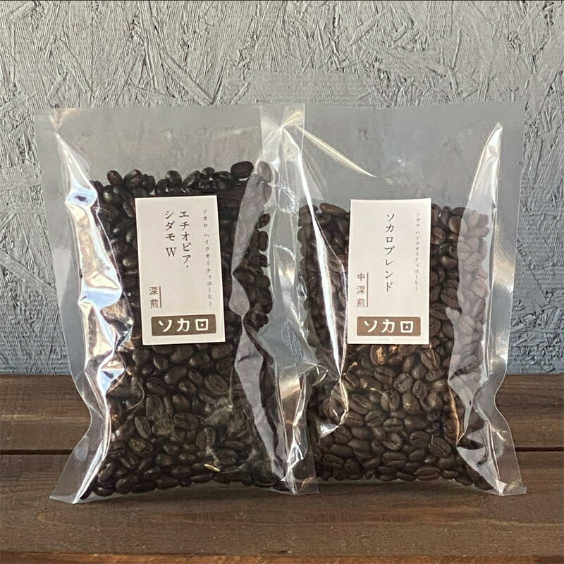 - 【ふるさと納税】【選べる豆の状態】ソカロブレンド100g + エチオピアシダモW100g 豆または挽き豆 【お菓子と自家焙煎コーヒー ソカロ】 飲料類 ドリンク 飲み物 コーヒー豆 珈琲豆 深煎り 甘さ コク コーヒータイム F21U-605var