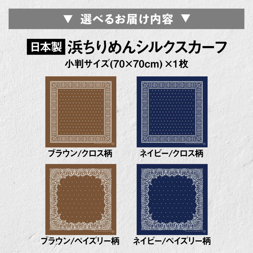 - 【ふるさと納税】【選べるカラー/柄】洗えるシルクスカーフ 70×70cm 滋賀県長浜市/有限会社吉正織物工場[AQDQ005] シルク スカーフ 洗える 絹 ファッション 小物 日本製 ギフト ネイビー ブラウン