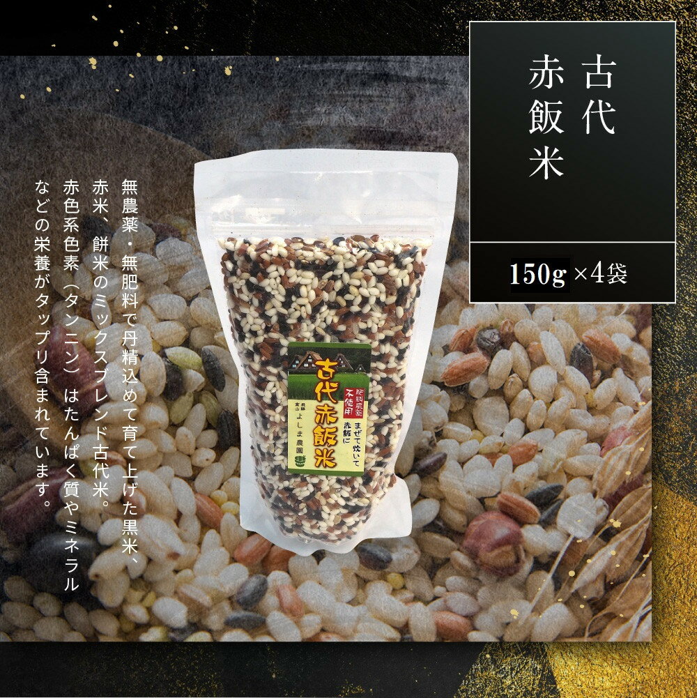 - 【ふるさと納税】古代赤飯米 150g×4袋 | 古代米 赤飯 黒米 もち米 農薬不使用 飛騨高山 10000円 よしま農園 CK018