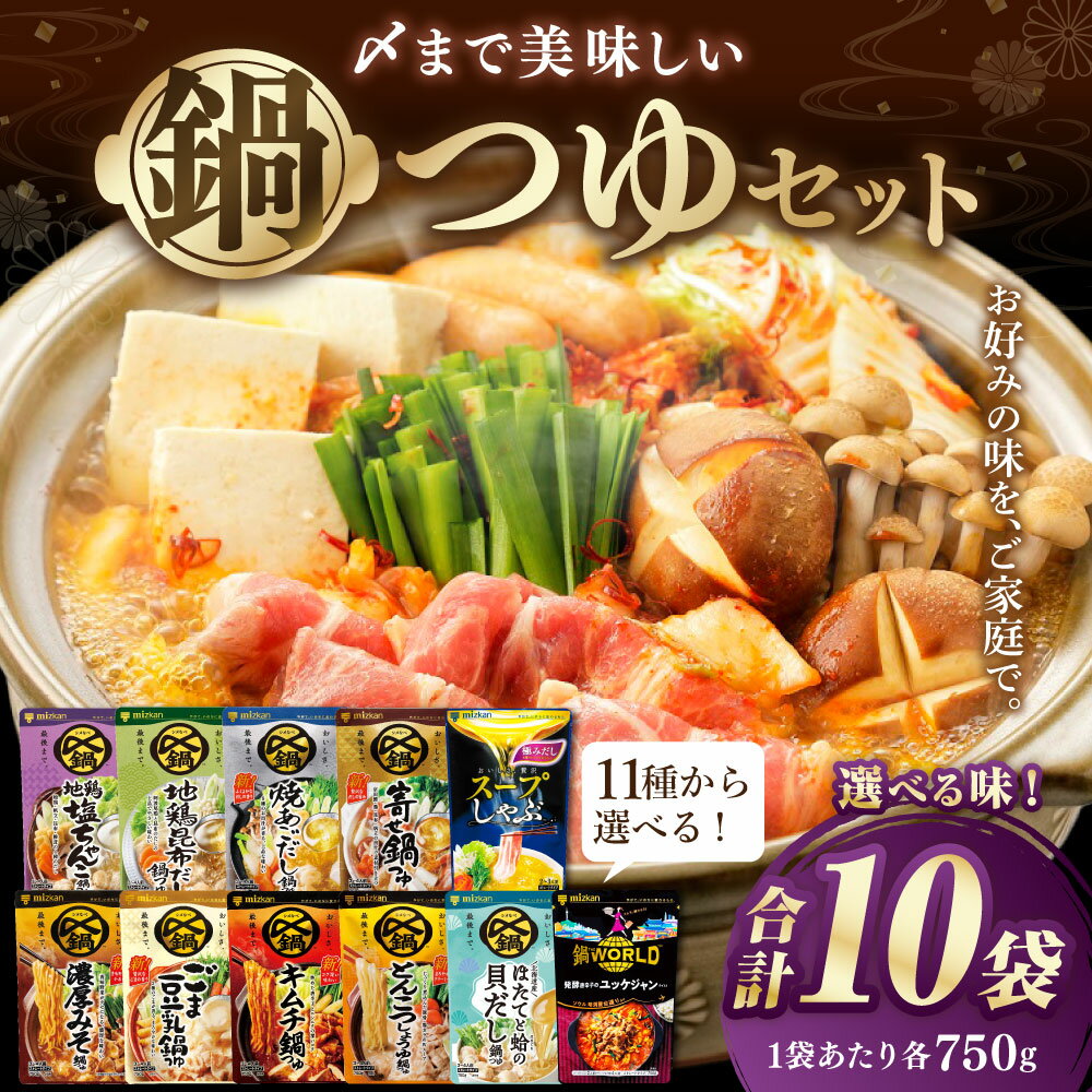 - 【ふるさと納税】《TVで紹介》ミツカン mizkan 〆まで美味しい 鍋つゆ 自由に選べる ( 10袋 ) セット 1袋750g 地鶏塩ちゃんこ 地鶏昆布だし 焼あごだし 寄せ鍋 濃厚みそ ごま豆乳 キムチ とんこつしょうゆ スープしゃぶ極みだし ほたて 蛤 ユッケジャン 鍋の素 お鍋 鍋