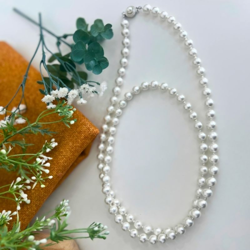 - コットンパール「ホワイト」ロングネックレス(金具シルバー) | 結婚式 二次会 パーティー 入学式 卒業式 華やか