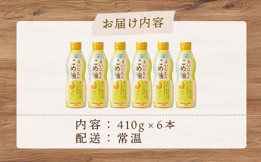 【三和油脂】ご家庭用 まいにちのこめ油 ミニボトル 410g×6本 ご自宅用 食用油 調理油 食品 山形県 F2Y-6967