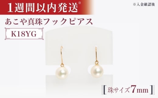 - 【真珠生産量全国1位の長崎からお届け!】 あこや真珠 (7mm珠) フックピアス K18YG(イエローゴールド)/ 贈り物 贈答用 パール 真珠 アクセサリー ジュエリー ピアス イエロー ゴールド ギフト 贈り物 プレゼント バレンタインデー ホワイトデー 入学式 卒業式 結婚式 冠婚葬祭 誕生日 スピード発送 最短発送 【園田真珠】 [RBB008]