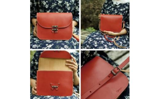 - ショルダーバッグ レッド 蝶モチーフ ヌメ革 バッグ 鞄 かばん カバン レディース メンズ おでかけ おしゃれ おすすめ 贈答 ギフト プレゼント お祝い 贈り物 HARUHINO 奈良県 奈良市