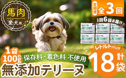 - a1087-G 【3回定期便】<保存料・着色料 不使用>愛犬用無添加テリーヌ レトルトパック 馬テリーヌ6袋×3回(1袋約100g・合計約1.8kg)【Nフードサービス】姶良市 馬 テリーヌ 犬 ドッグ ペット フード エサ レトルト おやつ ごはん ご飯 間食 ご褒美