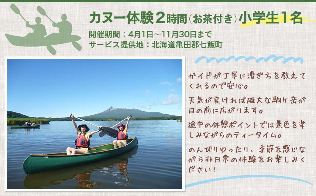 カヌー体験2時間(お茶付き)小学生 【 ふるさと納税 人気 おすすめ ランキング カヌー体験 カヌー かぬー 非日常 大沼 北海道 七飯町 送料無料 】 NABB002