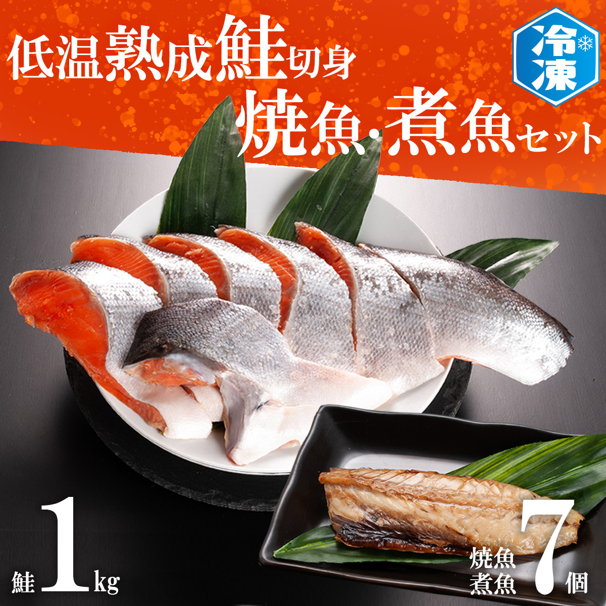 - 低温熟成鮭切身 1kg 焼魚 煮魚 7パックセット 切り身 ほっけ さば 赤魚 いわし 冷凍 魚 さかな 鮭 切身