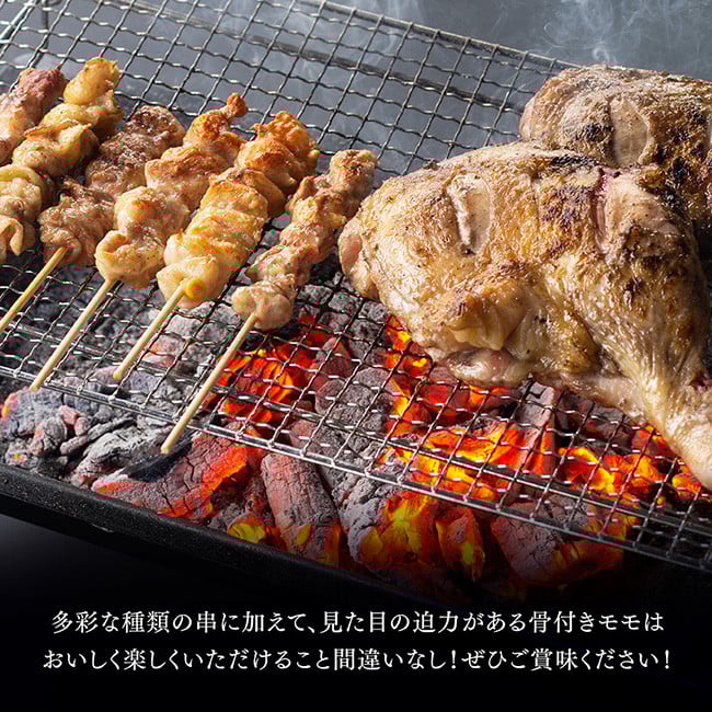 - 宮崎県産若鶏 BBQチキンセット(バラエティセット串7本×4P・骨付きモモ3本)タレ付き! 【 肉 鶏肉 串 骨付き バーベキュー 九州産 川南町 おうちごはん 送料無料 】
