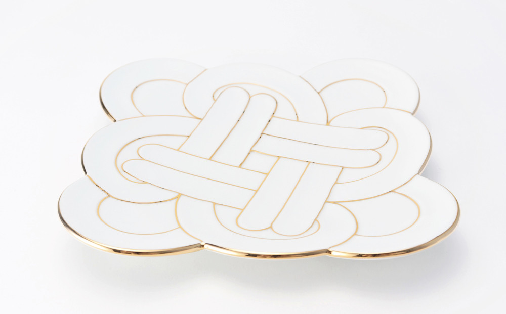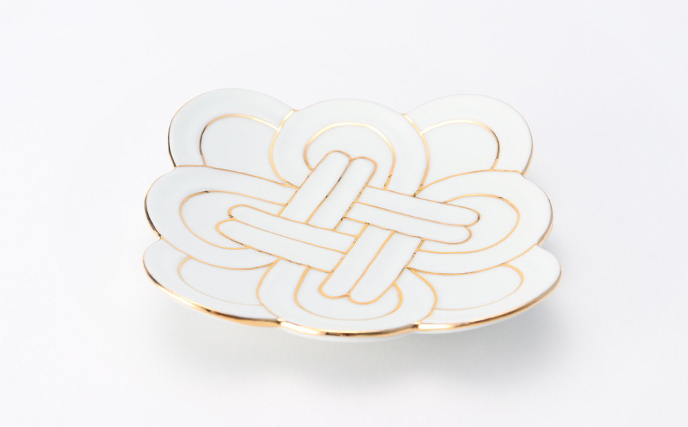 - 【セット】【有田焼】田清窯 金線吉祥むすび 3点セット(大皿×1・銘々皿×2) 丸兄商社