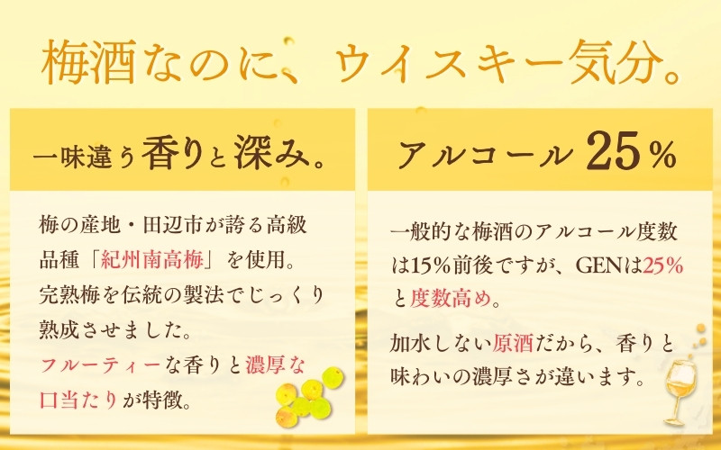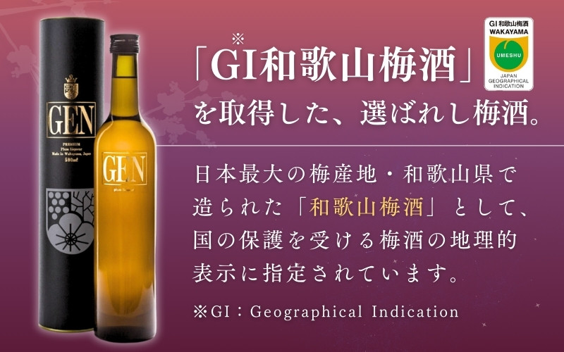 本格梅酒 紀州梅酒 原酒 GEN 500ml (化粧箱入)×1本 / 梅酒 酒 お酒 梅酒 アルコール 和歌山 田辺市 紀州南高梅 南高梅 原酒 梅 ロック 水割り プレゼント ギフト お土産 贈答 ご家庭【umy004-1】