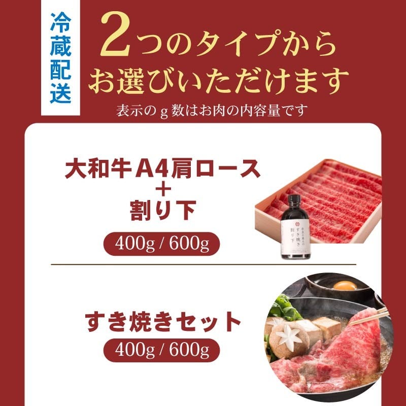 - 大和牛 上すき焼きセット 2~4人前 A4ランク 肩ロース 400~600g 割り下 具材 卵 米 付き すきやき すき焼き 牛肉 お肉 肉 niku 和牛 セット すき焼きセット 麩 しめじ きのこ 豆腐 卵 お米 米 白米 ご飯 ごはん 白ご飯 プレゼント ギフト 贈り物 贈答 奈良県 奈良市 なら ももしき