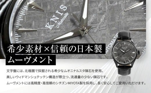 【KNIS KYOTO】メテオライト 日本製 自動巻き 腕時計 革ベルト レザー ブラック|京都発 腕時計 人気ブランド おしゃれ[ 京都 ニス 国産腕時計 MIYOTA おしゃれ 上品 高級 おすすめ ウォッチ 時計 ファッション お取り寄せ 通販 送料無料 ふるさと納税 ]