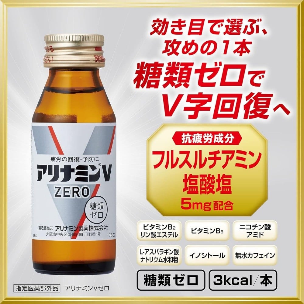 - アリナミンVゼロ 50ml×50本 / 糖類ゼロ ZERO フルスルチアミン タウリン 疲労回復 予防 回復 リフレッシュ 頑張りたい 不調 疲れやすい だるい 頭の疲れ エネルギー不足 集中 仕事 勉強 体力低下 食欲不振 栄養補給 病中 病後 奈良県 葛城市【tept029】