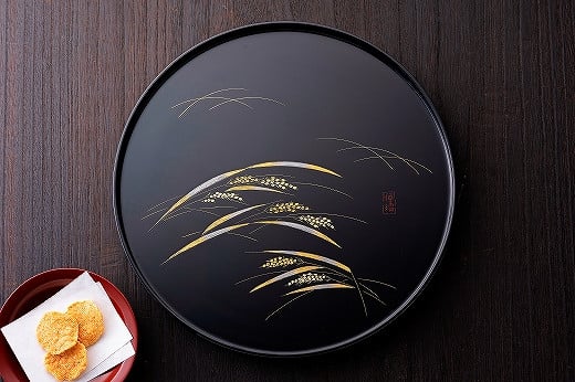 - 〈大藤漆器店〉丸盆(尺)稲穂柄 沈金技法 [高島屋選定品]