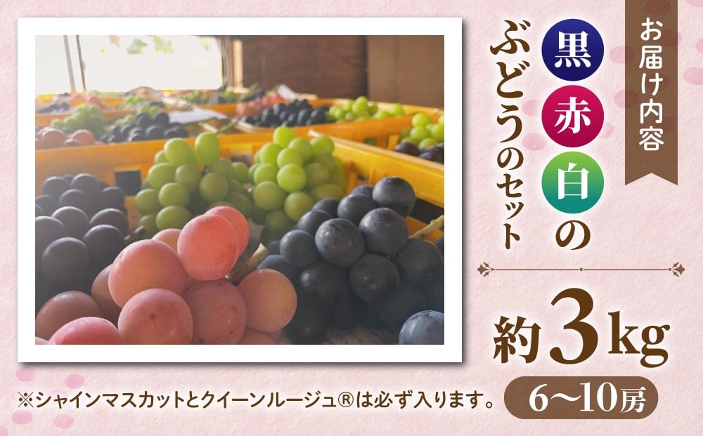 - 【先行受付2026年発送】農家直送!贈答用3色ぶどうの詰め合わせセット 3kg(6~10房)|おぎはら園(シャインマスカット、種なし巨峰、ナガノパープル 、クイーンニーナ、クイーンルージュ(R)など) ※2026年9月中旬~10月上旬順次発送