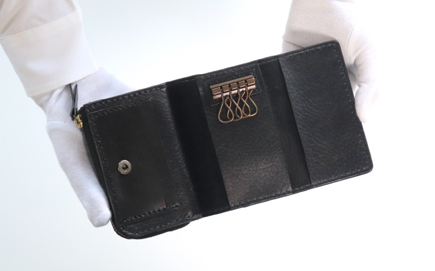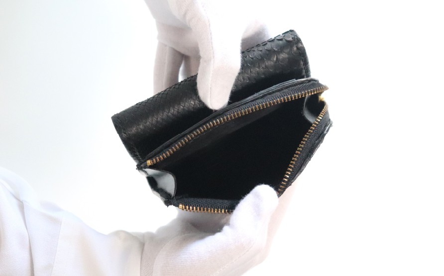 - ファスナーポケット付きキーケース(水ヘビ・黒系)| パイソン ヘビ革 蛇革 金運 縁起物 小銭入れ付きキーケース 財布付きキーケース 多機能キーケース キーポーチ 本革 レザー 革 革製品 革小物 コンパクト 経年変化 一点物 一生もの ハンドメイド クラフト 高級 本格 ギフト プレゼント おすすめ