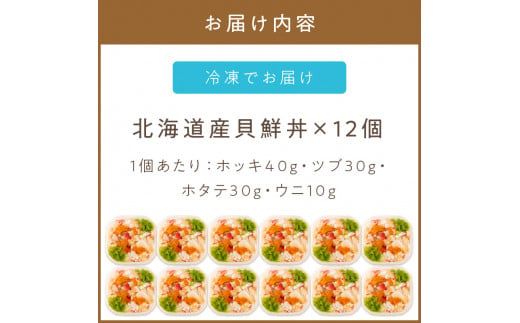 - 北海道の貝を堪能!ウニ入り!北海道産貝鮮丼セット12個入 ( うに ウニ 雲丹 貝 かい 海鮮丼 海鮮 魚介類 丼 ふるさと納税 )【094-0099】