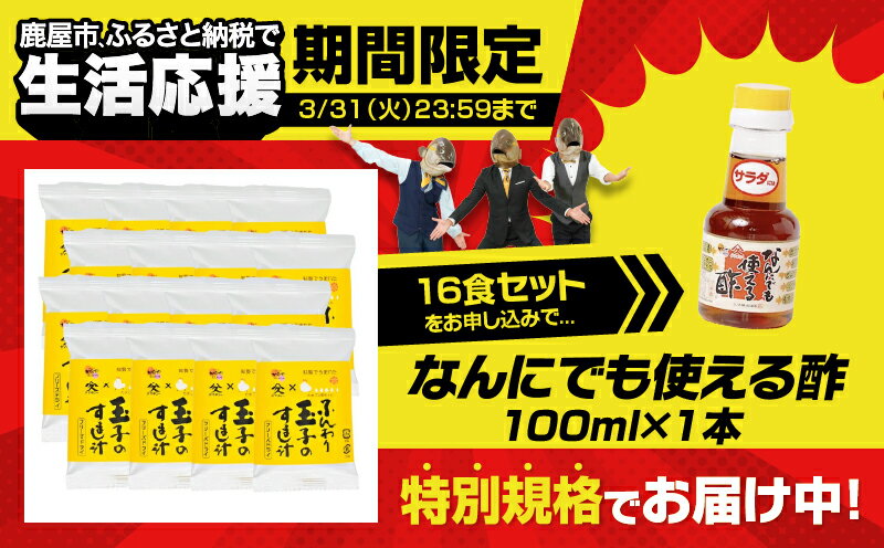 - 【ふるさと納税】【期間限定 生活応援】ふんわりたまごのすまし汁 合計16食(9.5g×16食) 朝食 夕食 お弁当や旅先にも! 淡口醤油と「知覧のたまごの菊ちゃん」の玉子で生まれた返礼品 【久保醸造合名会社】