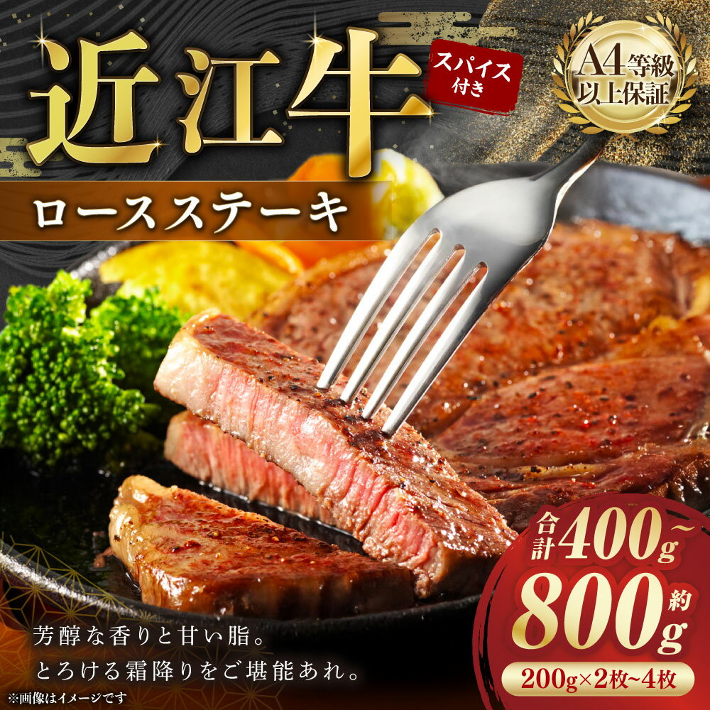 - 【ふるさと納税】<選べる内容量>A4等級以上保障!! 近江牛ロースステーキ 計約400g(約200g×2枚) / 計約800g(約200g×4枚) スパイス付き 【近江牛専門店かねきち】 近江牛 牛肉 お肉 ロース 霜降り 冷凍 滋賀県 湖南市 送料無料