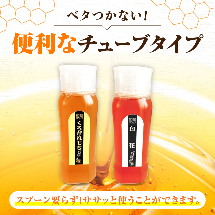 手軽に簡単チューブはちみつ(百花・くろがねもち)各500g 計2本セット 蜂蜜 ハチミツ お取り寄せ グルメ 三次市/重森養蜂場 [APBO005]