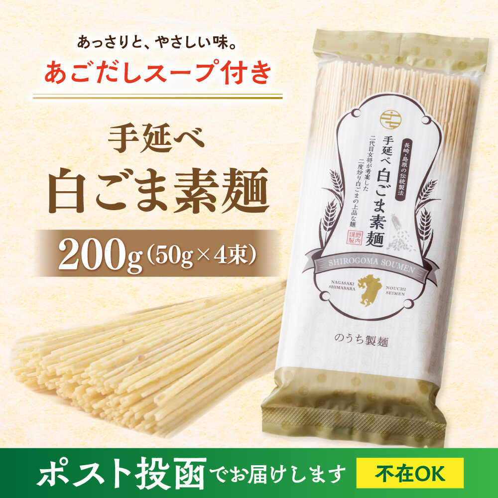 手延べ 白ごま 素麺 あごだし スープ 付 200g / 麺 乾麺 そうめん / 南島原市 / のうち製麺 [SAF014]