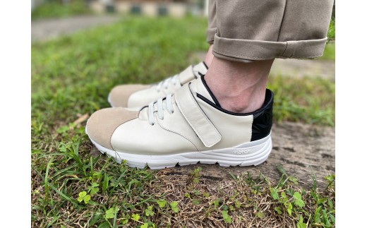 快適 !職人が作る レザースニーカー 白 × 黒 25cm | 関口善大靴工房 くつ 革 職人 靴 レザー 本牛革 調布 ファッション スニーカー 東京都 ブラック ホワイト