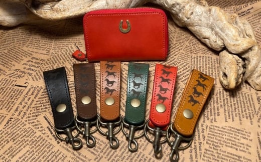蹄鉄ラウンドファスナーコインケース(レッド)&馬九いくキーリング(ダークブラウン) 栗東市 / 株式会社ブルズエフ [BIAU150]