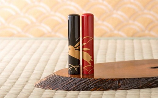 彫り士と蒔絵士の技術の融合『蒔絵印鑑12mm(うさぎ・さくら)』 黒色 うさぎ [I-02501a]